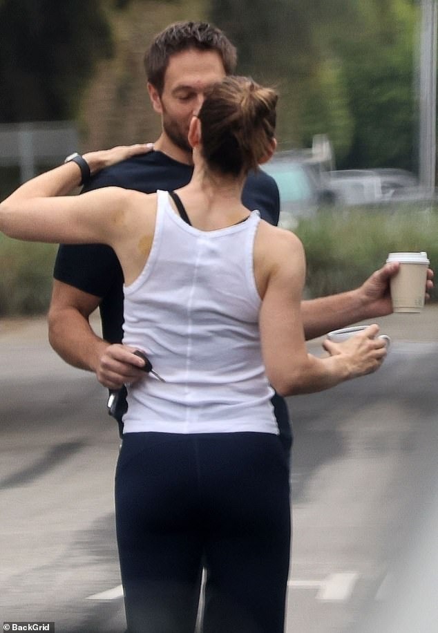 În ceea ce-l privește pe bărbat, alegerea lui a căzut pe un tricou închis la culoare și blugi. Barba lui era tunsă îngrijit, iar părul pieptănat în față. Noul cuplu a fost văzut într-un moment de intimitate. Se îmbrățișau strâns și se sărutau.
