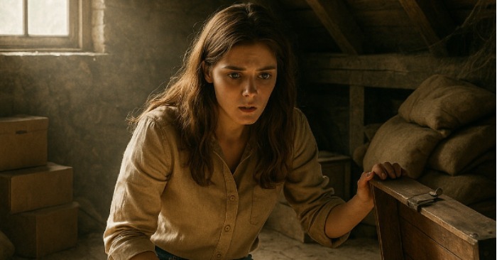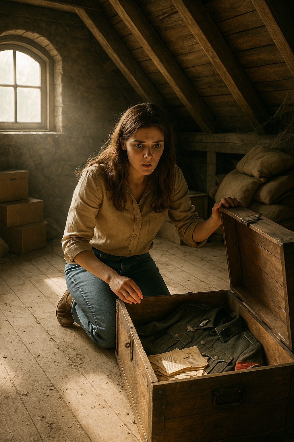 Nu se aștepta la nimic altceva decât cărți vechi, fotografii decolorate și haine mâncate de molii. Dar în colțul cel mai îndepărtat, ascuns sub o grămadă de ziare îngălbenite, Emily a găsit un cufăr greu din lemn. Încuietoarea era ruginită, lemnul zgâriat. Ceea ce o făcu să înghețe, însă, fu anul sculptat pe capac: 1942.