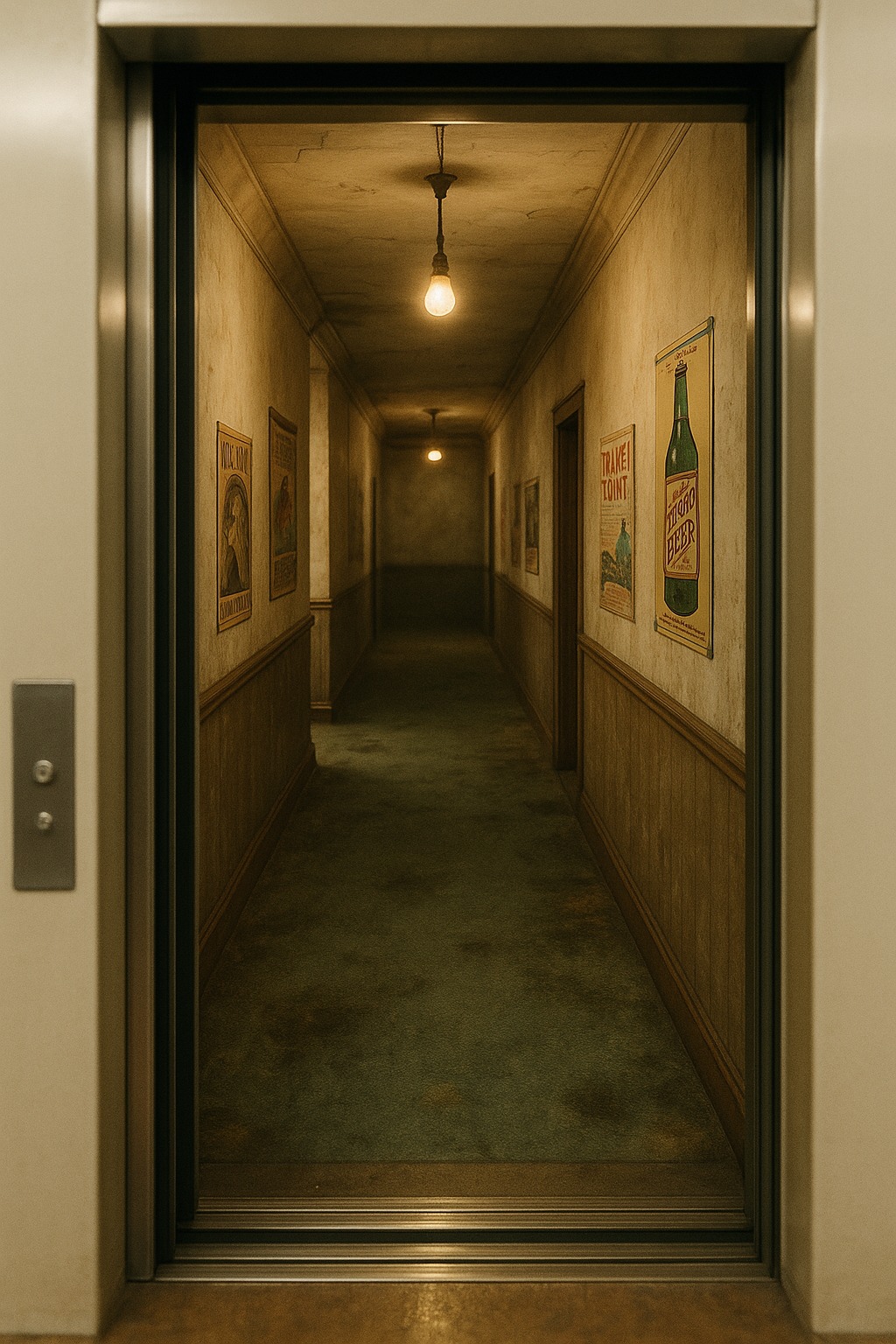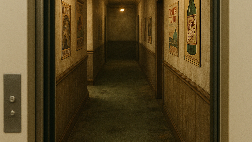 Pașii lui răsunau ciudat, înăbușiți de covorul umed. Trecu pe lângă uși marcate cu numere care nu aveau sens — 7A, 7B, 7C — toate încuiate. În spatele uneia dintre uși, îi păru că aude un zgomot slab de tastatură. În spatele altei uși, auzi un sunet de râsete, slab și îndepărtat.