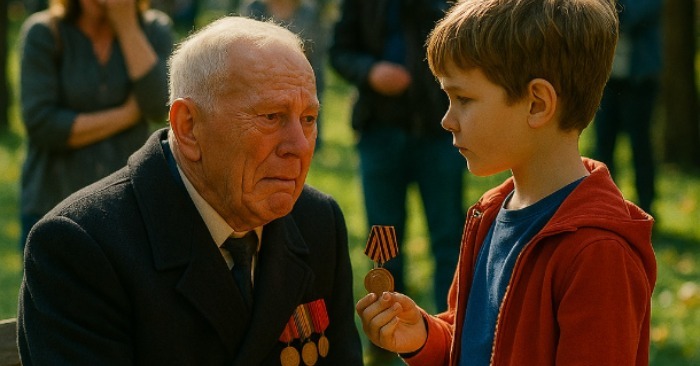 Veteranul și-a strâns buzele. La început, a vrut să le șteargă, dar apoi a scos o cutiuță mică din buzunarul interior. Înăuntru era o medalie veche – înnegrită de timp, dar încă strălucitoare. I-a dat-o băiatului.
