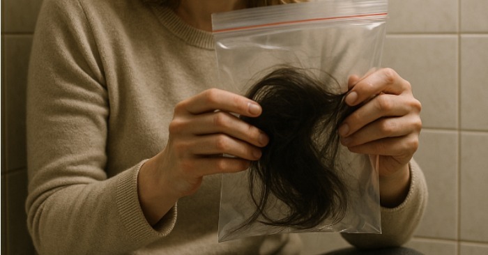 Inima îi bătea atât de tare încât simțea că o să-i explodeze. A adunat părul într-o pungă și l-a ascuns.