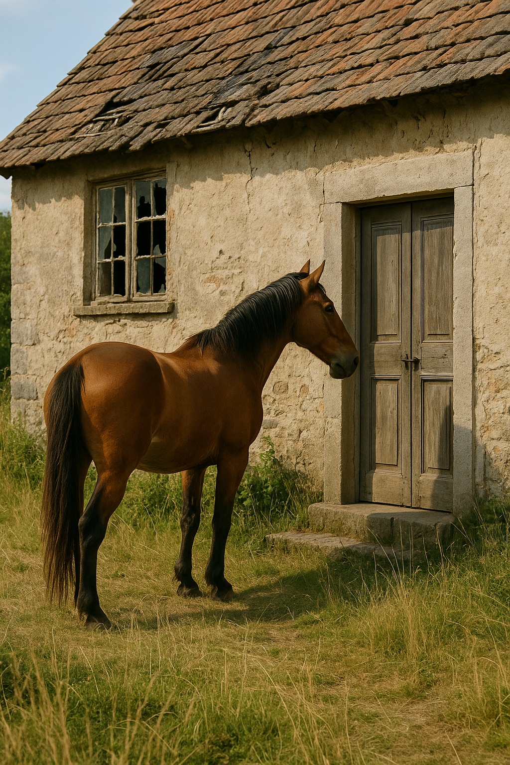 În fiecare seară, exact la apusul soarelui, un cal venea la casa abandonată a bătrânului fermier Peter. Ieșea din pădure, mergea încet pe cărarea de piatră și se oprea la poartă. Pășea prin curte câteva minute, tropăia cu copita în pământ și aștepta, cu capul plecat.