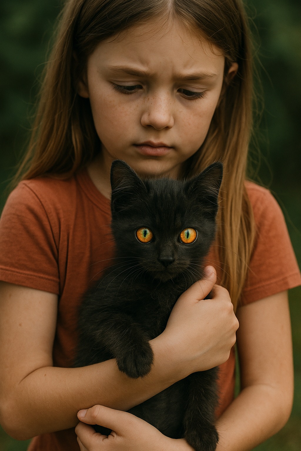 Pisicuța nu a mieunat. Scotea sunete ca o șoaptă. În noaptea aceea, Lisa s-a trezit cu senzația că cineva stă lângă patul ei. A aprins lumina și a văzut pisoiul stând pe un scaun, privind-o fix. Ochii lui străluceau în întuneric și aveau ceva uman.