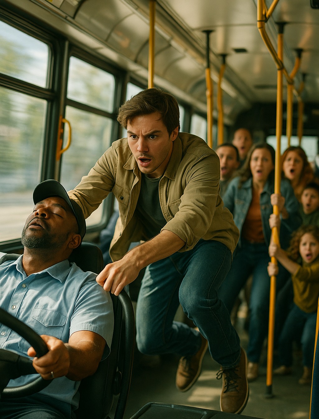 Șoferul stătea nemișcat la volan, cu brațele atârnând inerte pe lângă corp și cu capul plecat. O femeie care stătea cel mai aproape de el a țipat: „Își pierde cunoștința!”. Disperarea i-a cuprins pe pasageri. Autobuzul a gonit spre intersecția aglomerată, iar mașinile erau deja vizibile în față.