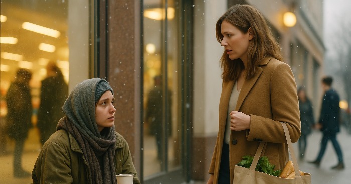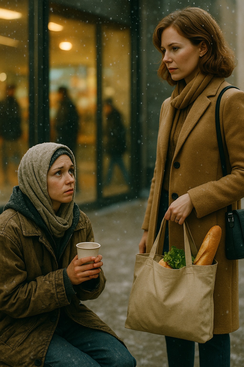 S-a oprit, fără să înțeleagă imediat de ce îi tresărea inima. Vocea era familiară – obosită, dar cumva blândă, ca de undeva din copilăria ei. S-a uitat mai atent: degete subțiri, buze tremurânde, ochi de culoarea ploii cenușii. Și dintr-o dată, lumea din jurul ei părea să se oprească.