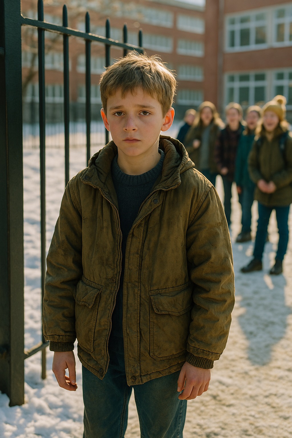 Curtea s-a umplut de strigăte, ușile s-au trântit zgomotos, iar mirosul de pâine de la cantină umplea aerul. Copiii alergau pe lângă ei, împingându-se, râzând și aruncându-și priviri – rapide, ascuțite ca sticla. Cineva a șoptit: „Uite, poartă din nou jacheta aia.” S-a prefăcut că nu aude, dar mâinile i s-au încleștat involuntar în buzunare.