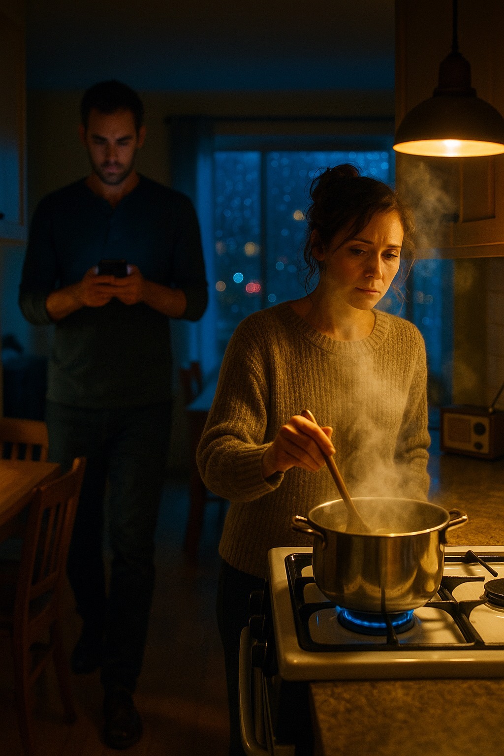 Mirosul de ceapă prăjită și condimente umplea bucătăria, radioul rula încet, iar soarele apunea afară.