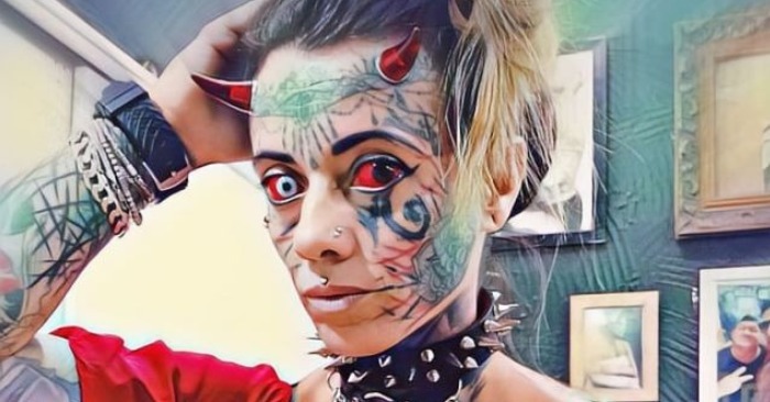 Au trecut aproape douăzeci de ani, iar acum Carol, în vârstă de 35 de ani, nu este doar o fată cu tatuaje – este o „femeie demon”, așa cum este cunoscută online. Pielea ei este acoperită de desene, ochii ei sunt pictați în culori înspăimântătoare, iar limba ei bifurcată și implanturile de sub piele o fac să arate ca și cum ar fi ieșit dintr-un benzi desenate Hellboy.