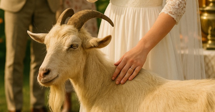 Mireasa a încetat brusc să mai zâmbească. Ochii i-au clipit, ca și cum și-ar fi amintit de ceva îndepărtat – o seară, copilăria, tatăl ei cu mâinile lui bătătorite și chiar această capră lângă el.