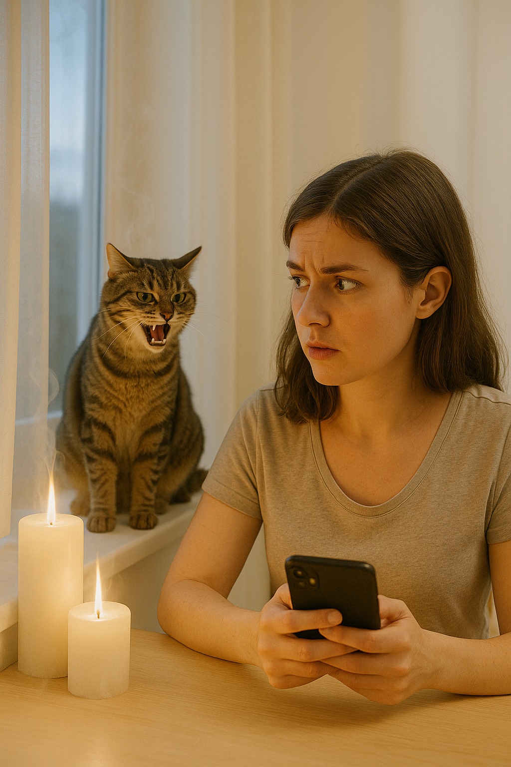 Focul atingea deja perdelele. Flăcările creșteau, ca și cum cineva le-ar fi insuflat viață. Am aruncat o pernă, am vărsat niște vin, pisica s-a strecurat sub pat. Totul a durat câteva secunde – fulgerul, fumul, bătăile inimii mele în urechi.