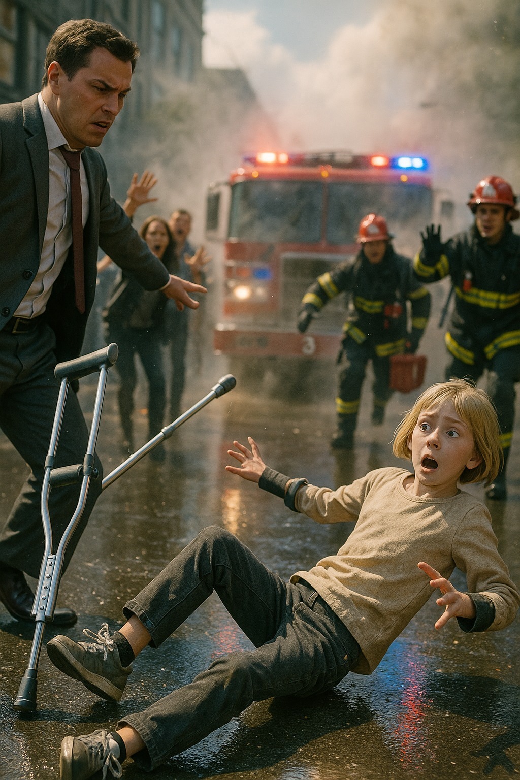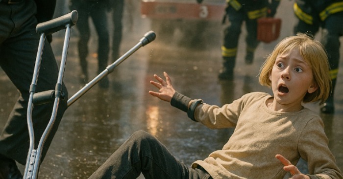 Mia și-a pierdut echilibrul, una dintre cârje i-a alunecat din mână și a căzut chiar în mijlocul trecerii. Mașinile au încetinit, iar cineva a strigat.