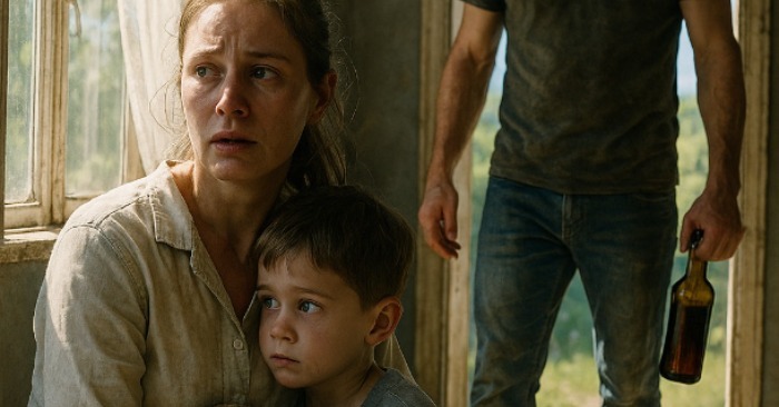 Ea a făcut un pas înapoi, protejându-și fiul.