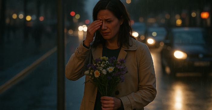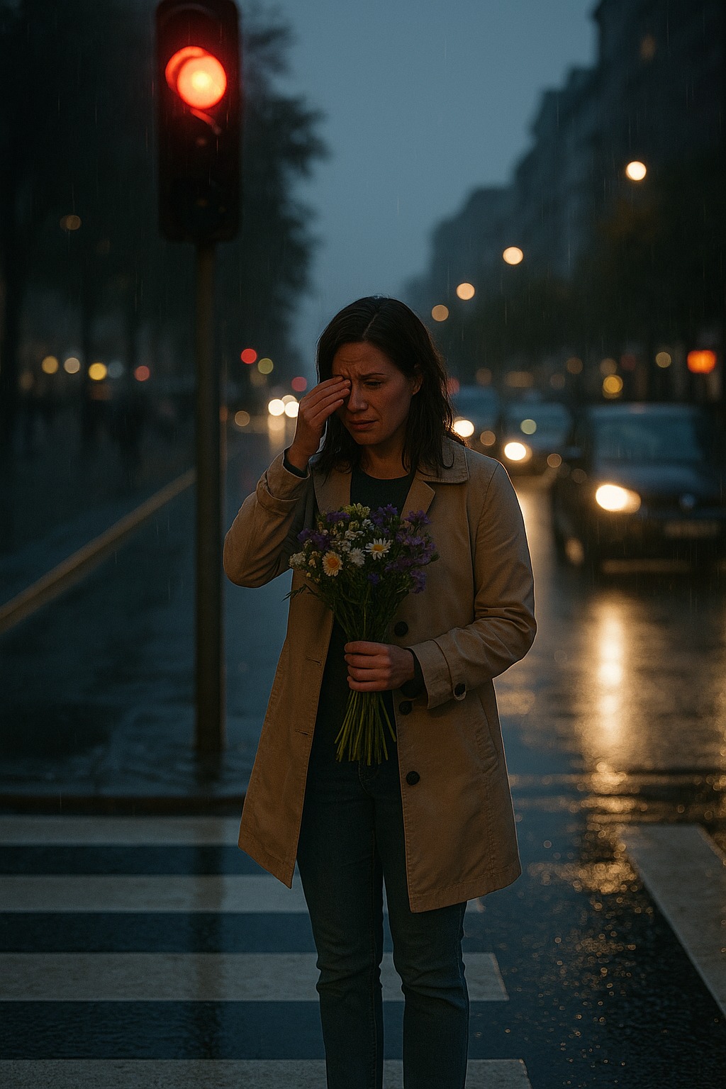 Traficul era blocat. Orașul de seară zumzăia, mașinile claxonau, unii se grăbeau spre casă, alții își răsfoiau telefoanele, așteptând ca semaforul să se facă verde. O femeie de aproximativ treizeci și cinci de ani stătea la trecerea de pietoni, ținând în mână un buchet de flori sălbatice. Arăta ca un trecător obișnuit, dar ceva în privirea ei era ciudat: nu se uita la semafor, ci la partea opusă a drumului.