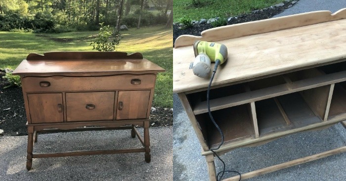 De-a lungul timpului, am găsit locul perfect pentru el în casă și am decis să încerc ceva ce nu mai încercasem niciodată – am decis să albesc lemnul. Înainte de a face asta, am șlefuit cu grijă întreaga suprafață, îndepărtând strat cu strat vechiul finisaj.