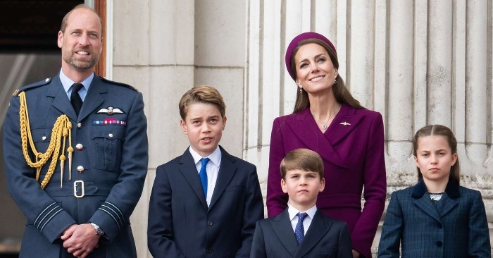 Prințul William a ales un costum tradițional bleumarin, în timp ce George și Louis au urmat exemplul tatălui lor, apărând în nuanțe la fel de festive. Familia regală arăta incredibil de armonioasă și festivă.