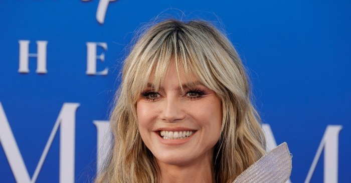 Heidi a purtat peste ea un halat scurt de mătase în aceeași nuanță. Pliurile sale subtile au adăugat o notă senzuală. Buclele îngrijite și machiajul impecabil au completat look-ul.