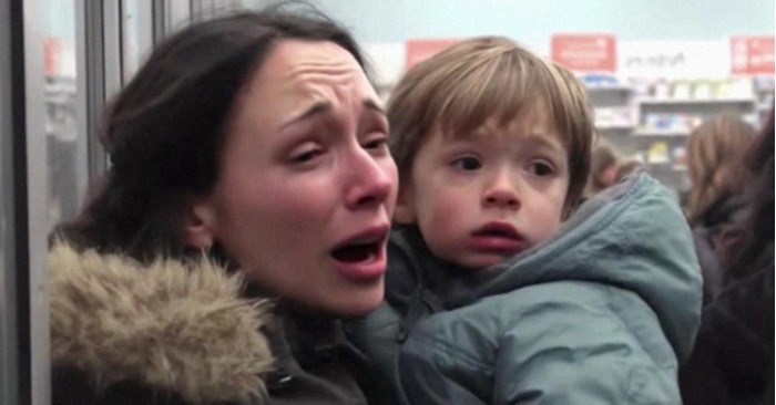 Doar l-a strâns mai tare pe fiul ei, în timp ce lacrimile îi curgeau în tăcere. Băiețelul și-a înfipt degetele în puloverul mamei sale și și-a îngropat fața în umărul ei.