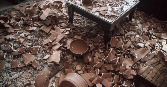 Piesă cu piesă, a distrus totul. Căni, boluri, farfurii. A călcat chiar cu tocul pe cioburi mai mari pentru a le sparge și mai mult.