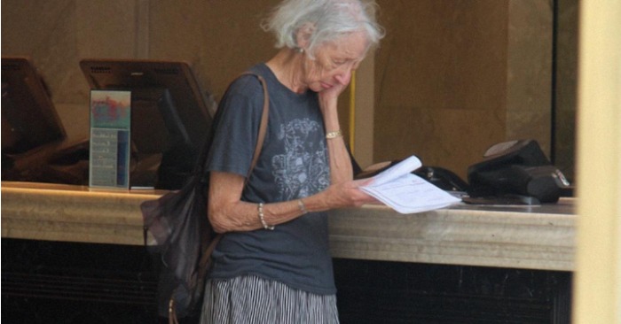 Bunica stătea lângă un palmier înalt, mică sub tavanele înalte. Cardiganul ei subțire era încheiat greșit, geanta îi aluneca de pe umăr. În mâinile tremurânde ținea un teanc de hârtii și chitanțe mototolite.