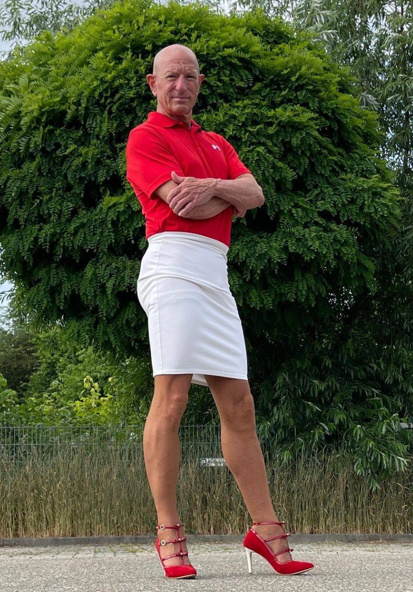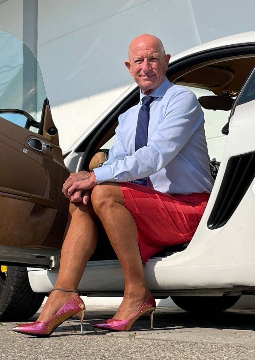 „Un bărbat heterosexual, cisgen, fan Porsche, care se bucură să poarte în fiecare zi fuste și tocuri înalte.” Pentru el, îmbrăcămintea este pur și simplu îmbrăcăminte.