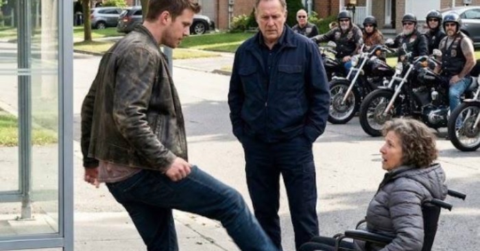 Lucas i-a făcut semn unuia dintre bicicliști, iar doi dintre ei au pășit înainte pentru a o ajuta pe Mia. Momentul era în același timp simplu și solemn: un grup de oameni complet necunoscuți s-a unit pentru a proteja pe cineva pe care societatea părea să-l ignore.