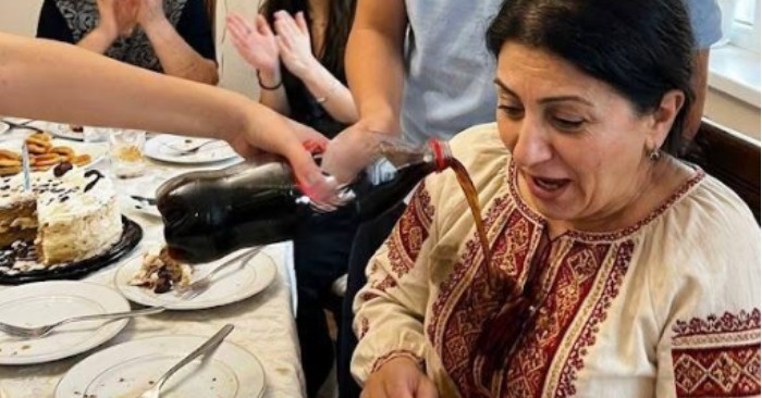 Când toți erau deja la masă, nepotul meu Ilja s-a apropiat de mine cu o sticlă de Cola. Nu se grăbea, ca și cum ar fi știut că va fi în centrul atenției. S-a oprit lângă mine, m-a privit direct în ochi – și brusc a turnat lichidul întunecat și dulce pe genunchii mei.