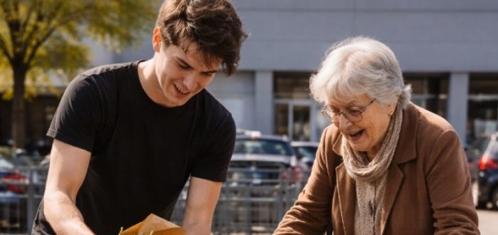 În parcarea unui supermarket, un tânăr i-a smuls o femei în vârstă coșul de cumpărături și a aruncat totul pe jos, pentru a-l ataca apoi pe bărbatul în