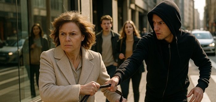 Ploaia tocmai se oprise. Aerul mirosea a beton ud și metal, iar bălțile reflectau lumina slabă a vitrinelor. Nora mergea încet pe stradă, cu gulerul lăsat, strângându-și geanta