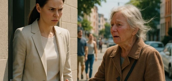A stat lângă ușă, strângând pumnii ca să nu tremure. „Pleacă”, a spus ea rece. „Ne faci rușine familiei. Nu mai am nimic să-ți spun.” Bătrâna stătea tăcută