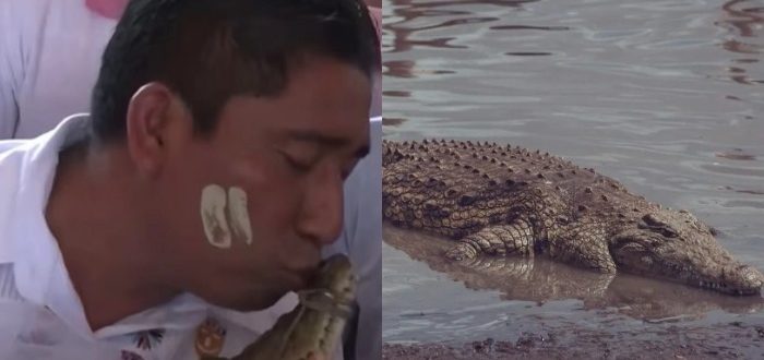 A purtat un costum elegant, iar „mireasa” sa a purtat o rochie albă și voal… 💍🐊 Sute de oameni s-au adunat pe străzile orașului mexican San Pedro Huamelula